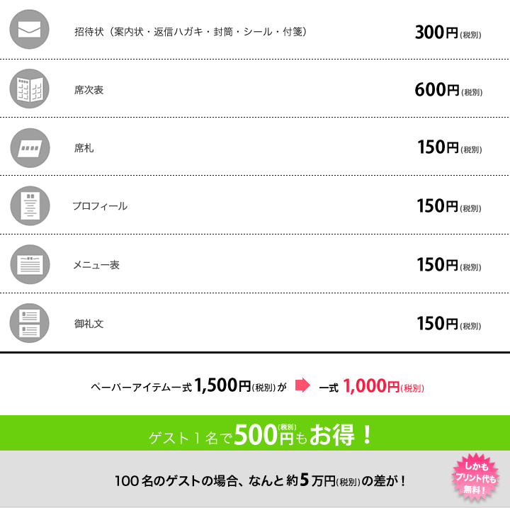 ※ペーパーアイテムは入力・プリント代も込み